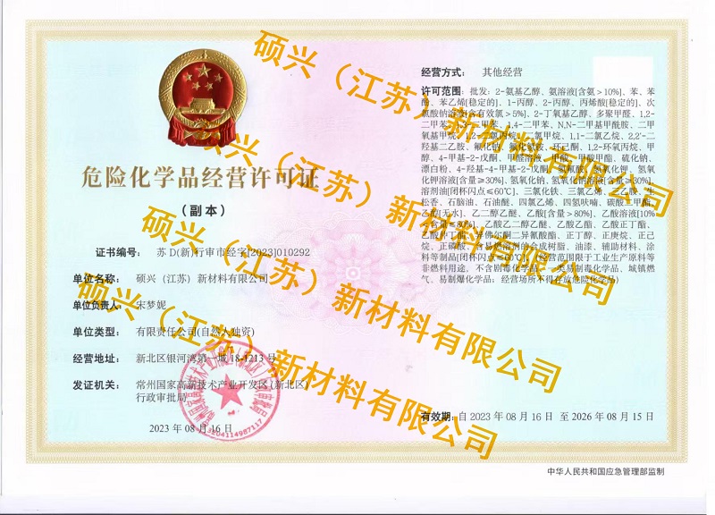 碩興新材料有限公司是一家集研發(fā)、生產(chǎn)、銷售于一體的化學(xué)品、有機(jī)溶劑、材料的供應(yīng)企業(yè)